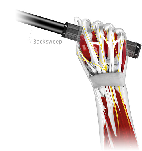 Deze buiging naar achteren wordt ook 'backsweep' genoemd.